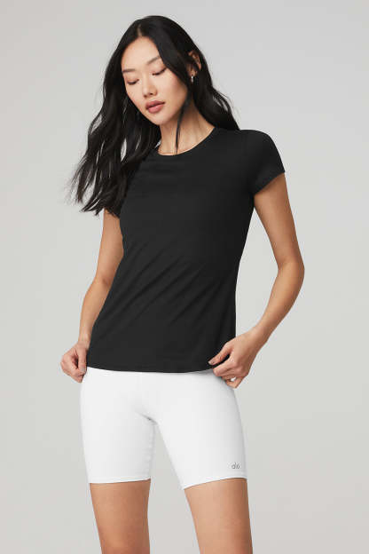 Your two absolute essentials, combined — Alosoft & easy, wear-everywhere tees. The Alosoft Finesse Tee is airy & ultra-soft, perfect for sweaty yoga sequences or completing your perfect street look. Hook up this relaxed staple with colorful bikers or cool capri leggings and head out.
