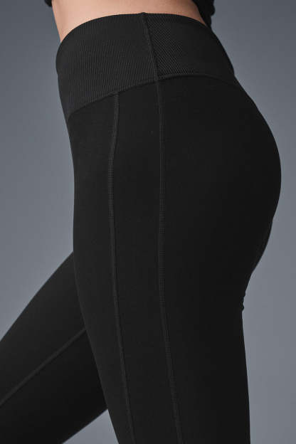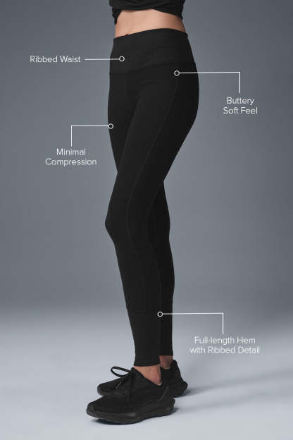 Cut from our softest performance fabric to date, the High-Waist Alosoft Lounge Legging is seriously comfy & so on-point for practice & beyond. Ribbed details at the waistband & cuffs and a sweet, contouring back seam for added lift give this forever-fave status. Throw on your fave ALO coverup or make it a full look with a super-soft Alosoft bra look.