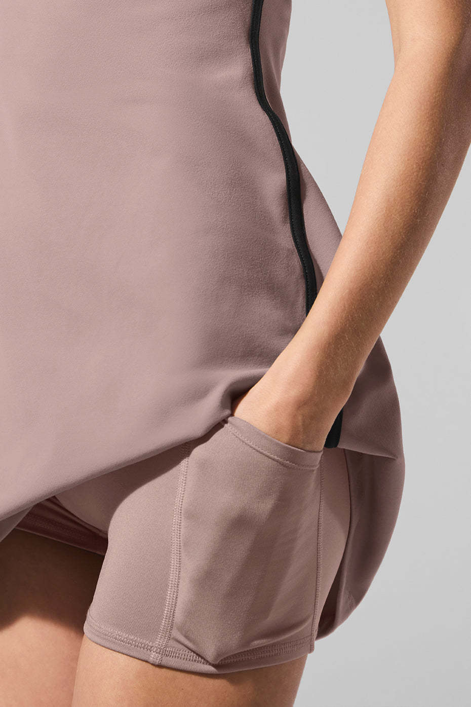 How cute is this dress? From the contrasting piping to the adorable A-line fit that swoops in at the waist and eases out through the hips, there’s nothing not to love. It's practical, too, with built-in shorts (plus pockets) and a shelf bra with removable cups. And the Airbrush fabric is smoothing but not overly compressive—prime for working out or wearing out.