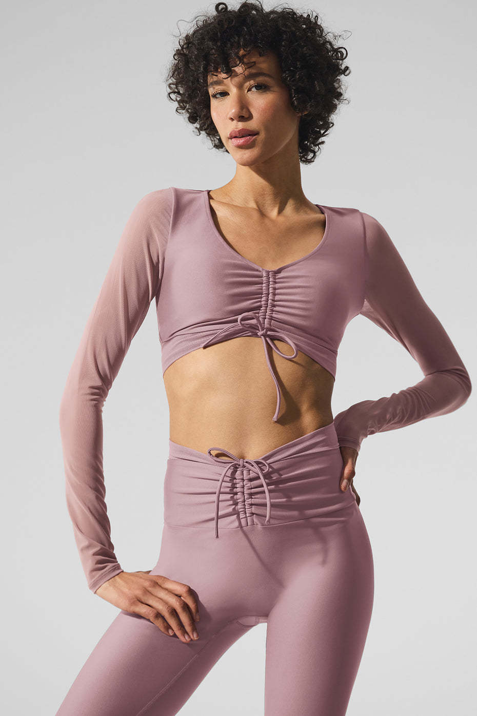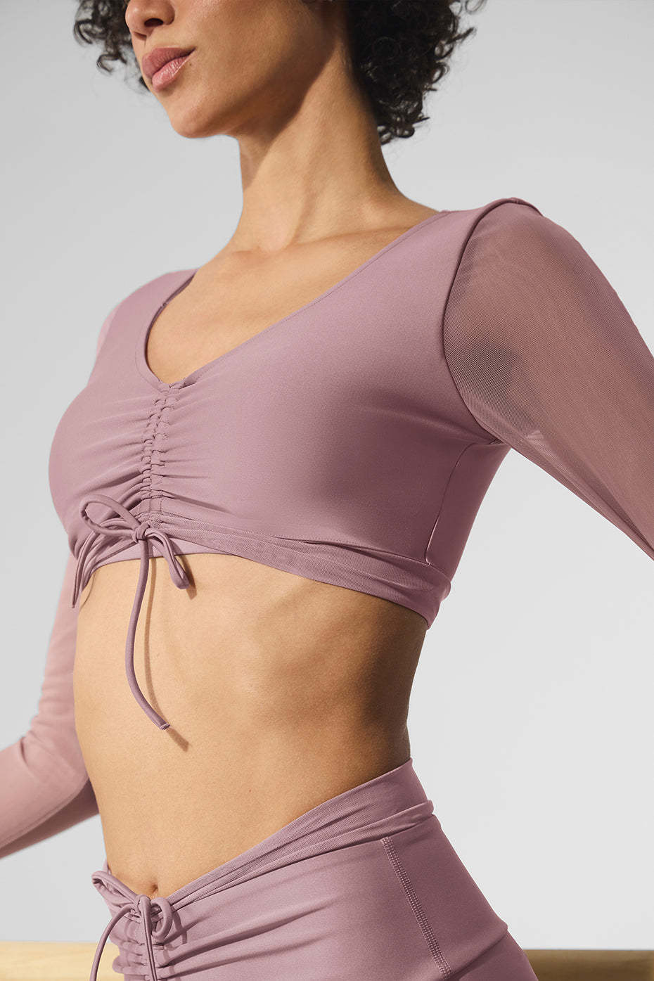 Add a touch of femininity to any look with the Airlift Mesh Divine Long Sleeve Bra. Made of our signature Airlift fabric, it has chic mesh details and sleeves that give it something special. Find your perfect crop with the adjustable front cinching for a chic look for your next workout.