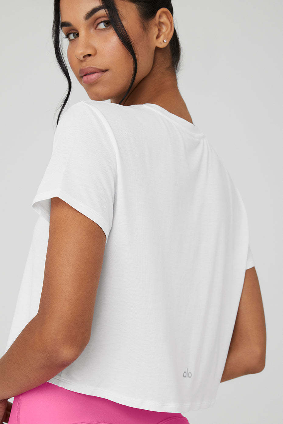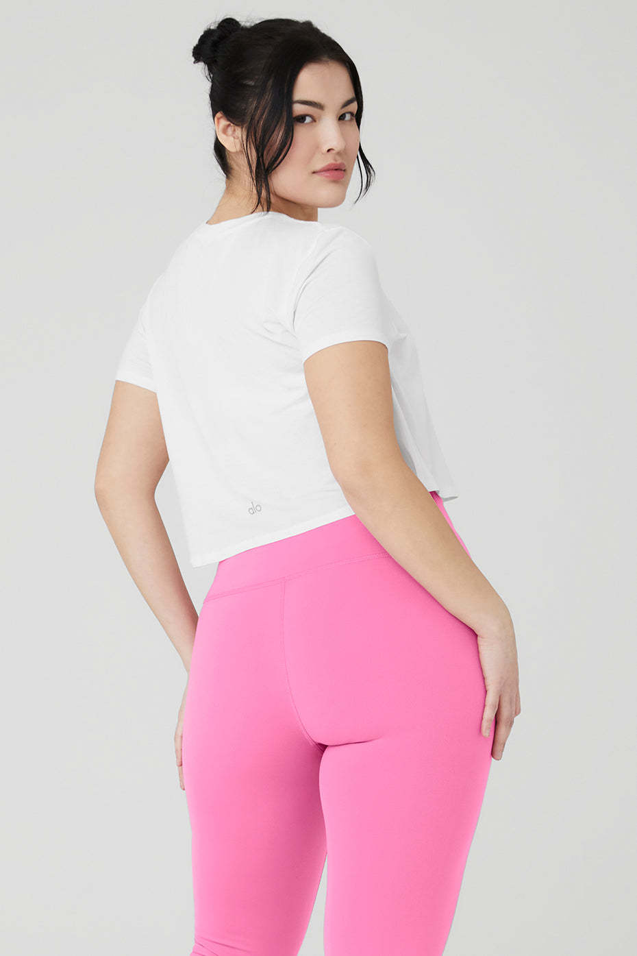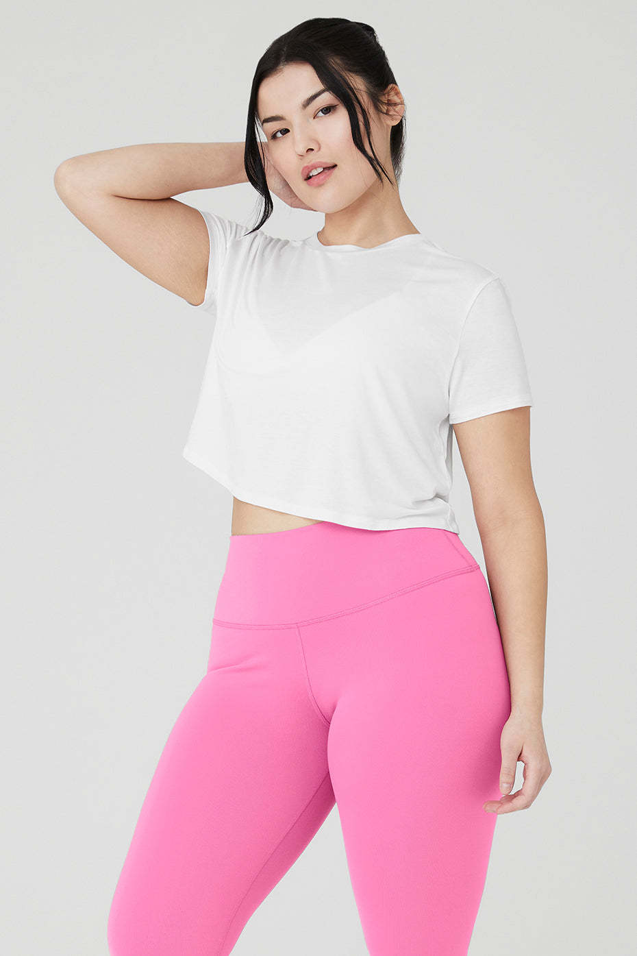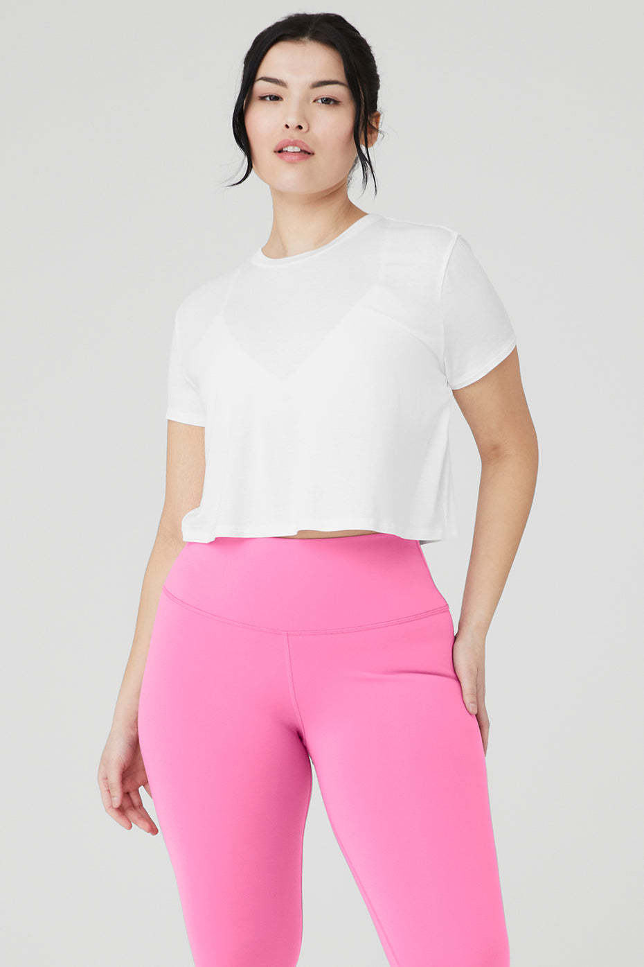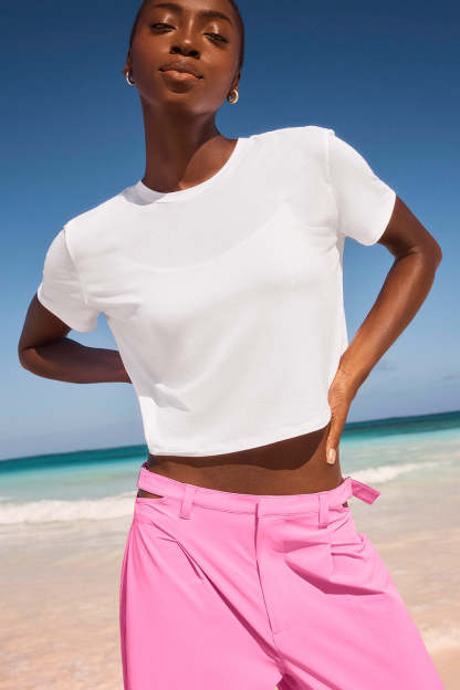 The Cropped All Day Short Sleeve is the ultimate everyday, throw-on-and-go crew neck tee. It*s made from super-soft, lightweight modal jersey fabric and hits right at the waist 〞 perfect for creating effortless and endless outfits with any athelo bottom. Wear it solo or layered under a light cover up and get going.