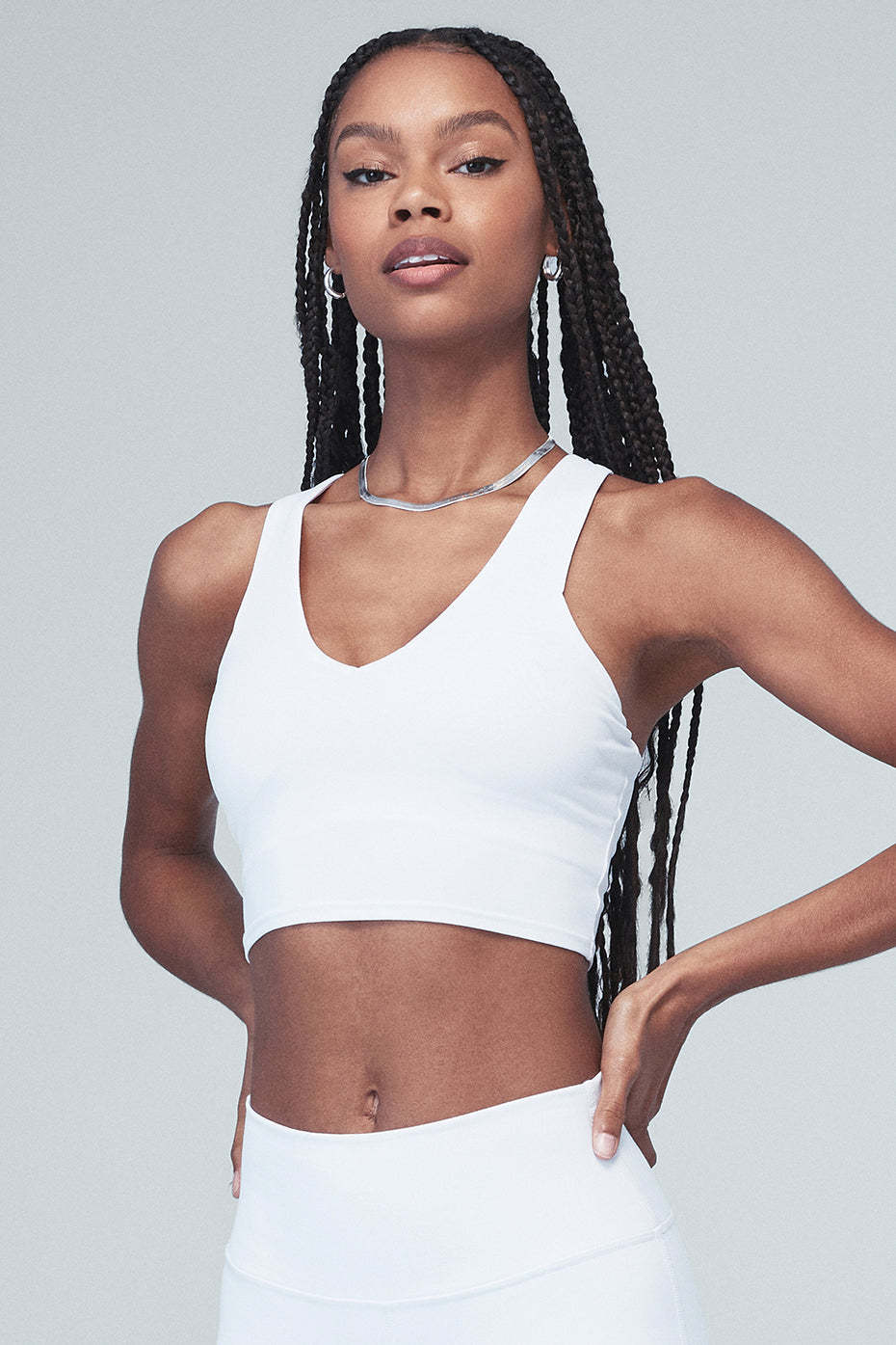 When you want the coverage of a tank and the support of a bra, reach for this. The Real Bra Tank has wide straps, a flattering V-neck, a built-in shelf bra and a racerback. Made from our signature Airbrush fabric that*s super soft with medium compression, you*ll go from Pilates to perusing the farmers market without missing a beat.
